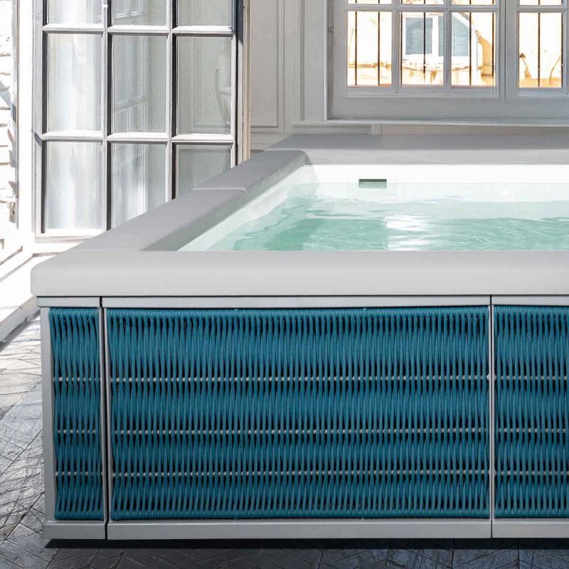 La mini-piscine Laghetto Ninfea Thiny est une mini-piscine hors sol haut de gamme qui allie design sophistiqué et confort exceptionnel, idéale pour apporter une touche d’élégance à votre jardin, terrasse ou espace extérieur. Son revêtement unique en corde nautique tissée à la main sur structure en aluminium offre un style raffiné au goût minimaliste tout en garantissant une résistance optimale aux intempéries et aux UV. Les coussins périmétriques inspirés du monde nautique entourent le bassin pour apporter une sensation de confort supplémentaire, que vous soyez dans l’eau ou autour du bassin, créant un espace lounge aquatique convivial et relaxant. Grâce à sa conception artisanale et à l’attention portée aux détails, la Ninfea Thiny se distingue par une esthétique élégante et intemporelle, parfaite pour enrichir votre extérieur d’un lieu de détente unique.
